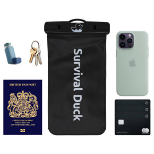 Waterproof dry pouch with front viewing window. Touchscreen compatible allowing you to use your smartphone and kindle while your device is in the bag. Also perfect for keeping your passport and money dry while travelling. £5.50 -
